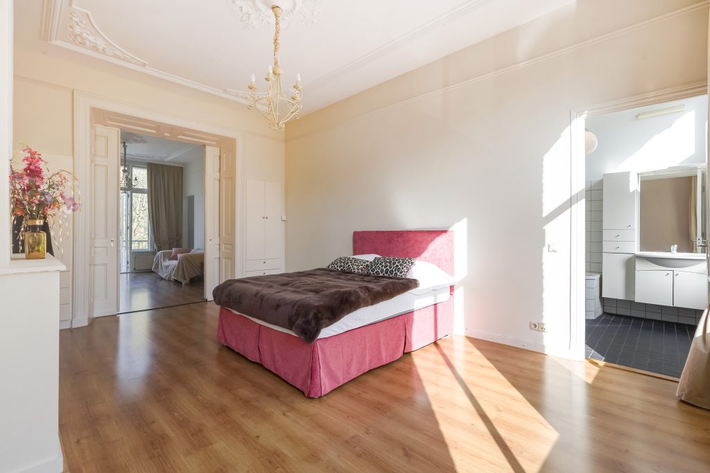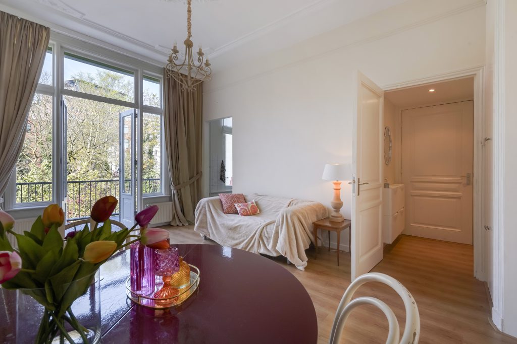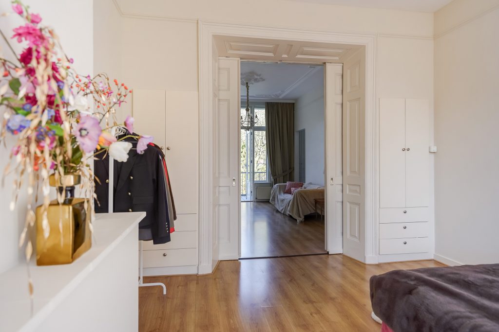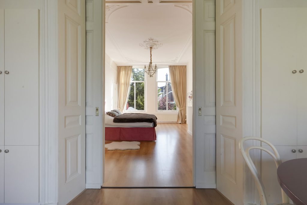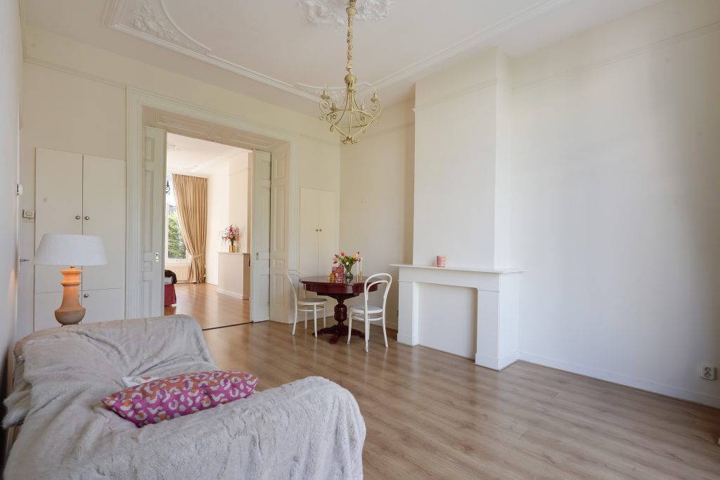 Sfeervolle etage op de eerste verdieping vol karakter, met prachtige originele details zoals hoge ornamentenplafonds en authentieke en-suite deuren die de woning een statige en warme uitstraling geven. Hier woon je in een huis met een verhaal, waar charme en comfort moeiteloos samenkomen.