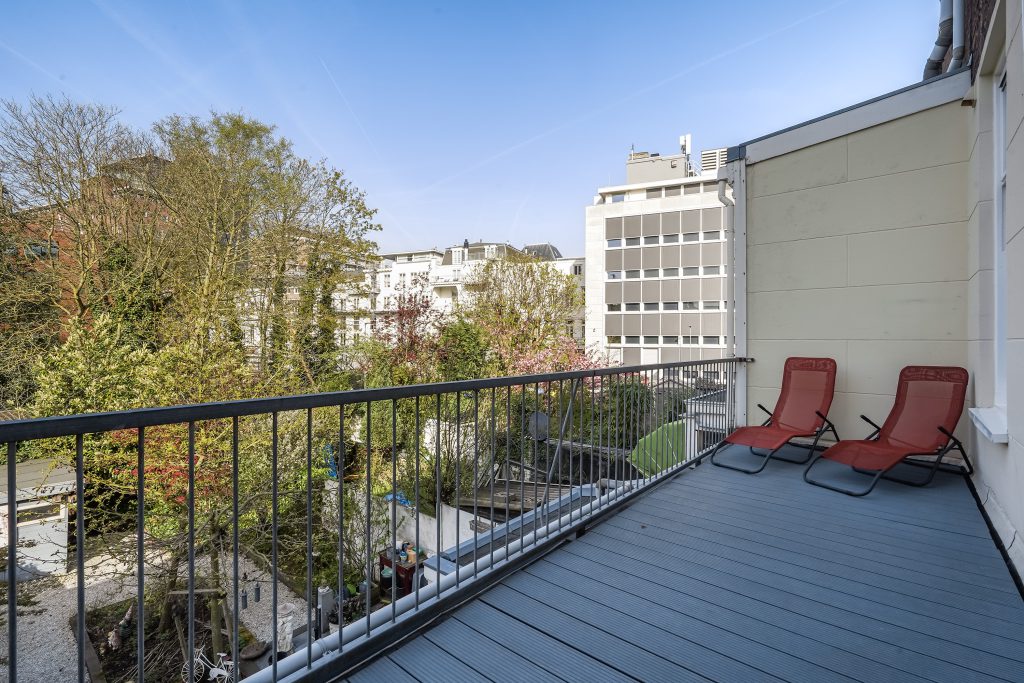 Aan de achterzijde bevindt zich een fraai terras gelegen op het zuiden — een heerlijke plek om de dag te beginnen met een kop koffie of juist af te sluiten met een goed glas wijn. Zie je jezelf hier al zitten, genietend van de rust terwijl de stad op korte afstand altijd binnen handbereik is?