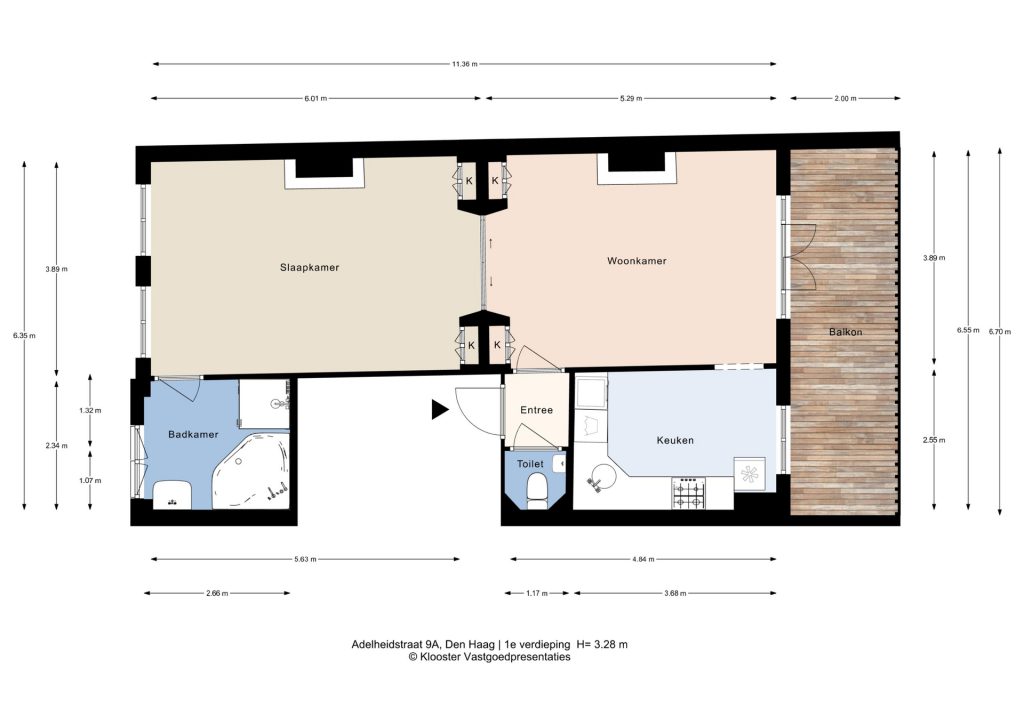 De indeling is prettig en praktisch: een ruime en lichte woonkamer, een comfortabele slaapkamer, een moderne keuken met inbouw apparatuur en een fijne badkamer met vaste wastafel, douche en ligbad— alles wat je nodig hebt voor aangenaam wonen.