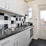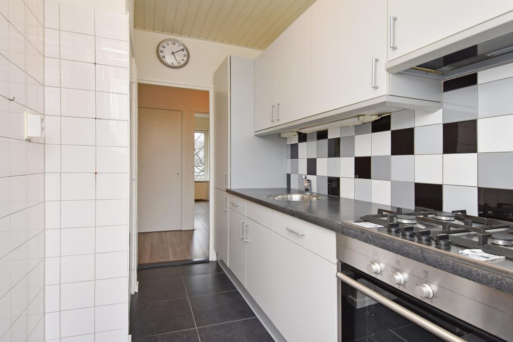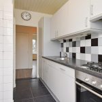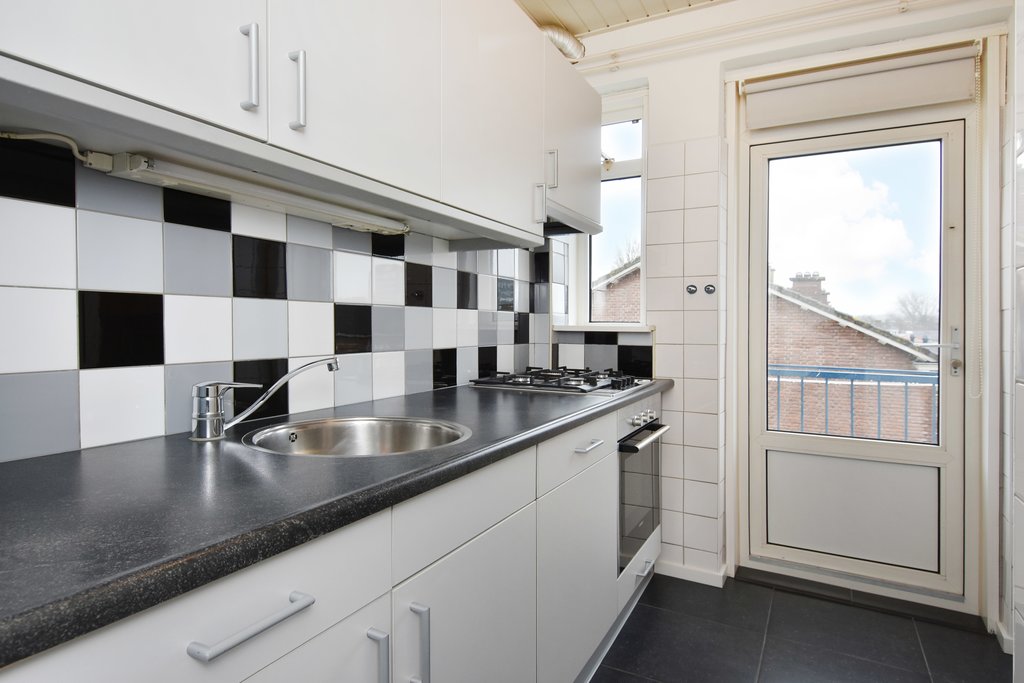 De keuken is voorzien van een net keukenblok, gaskookplaat, oven, vaatwasser, koelkast en een extra inpandige bergruimte met wasmachine aansluiting. Vanuit de keuken is er toegang tot het balkon.