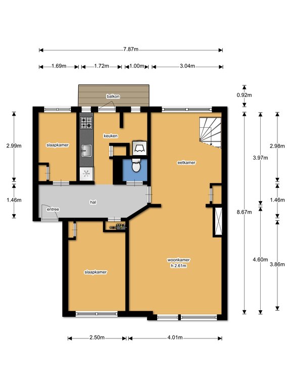 Entree via de ruime hal met toegang tot alle vertrekken.