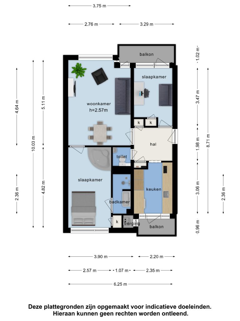 “Deze informatie is door ons met de hoogst nodige zorgvuldigheid samengesteld. Door ons kantoor wordt echter geen enkele aansprakelijkheid aanvaard voor enige onvolledigheid, onjuistheid of anderszins, dan wel de gevolgen daarvan. Alle opgegeven maten en oppervlakten zijn indicatief.”.