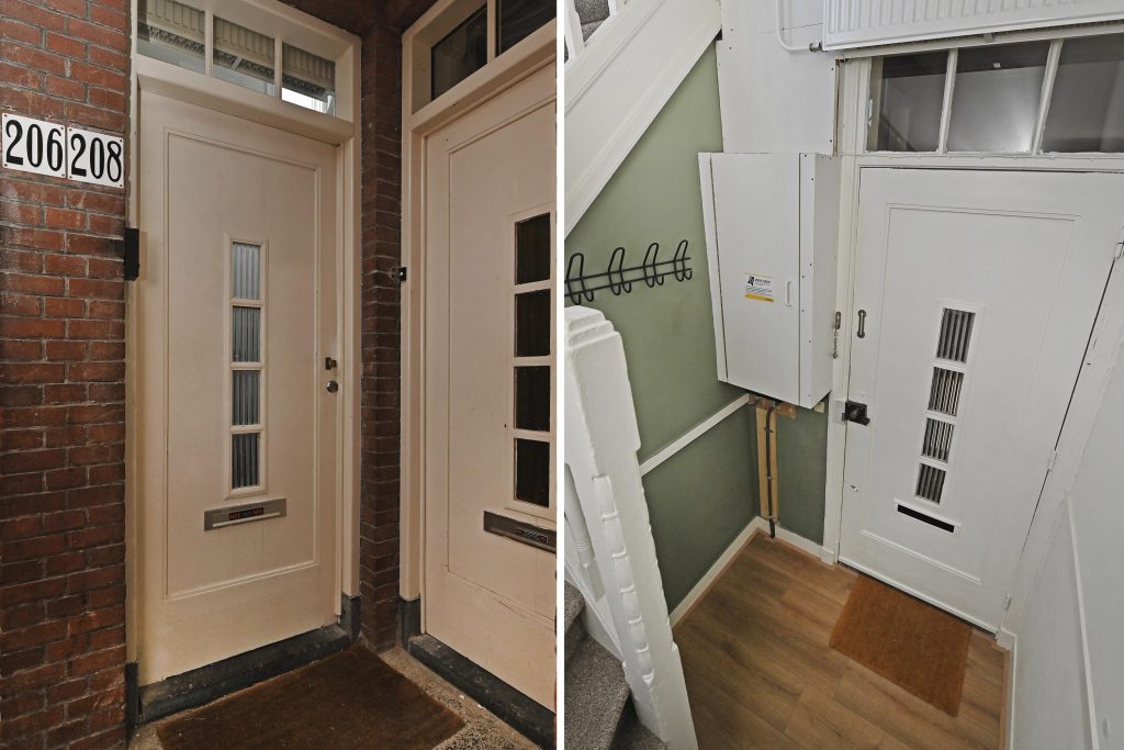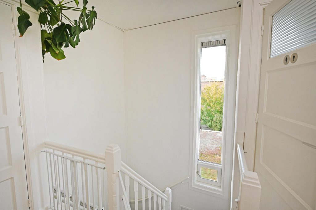 Open portiek met trapopgang naar de eerste etage.
