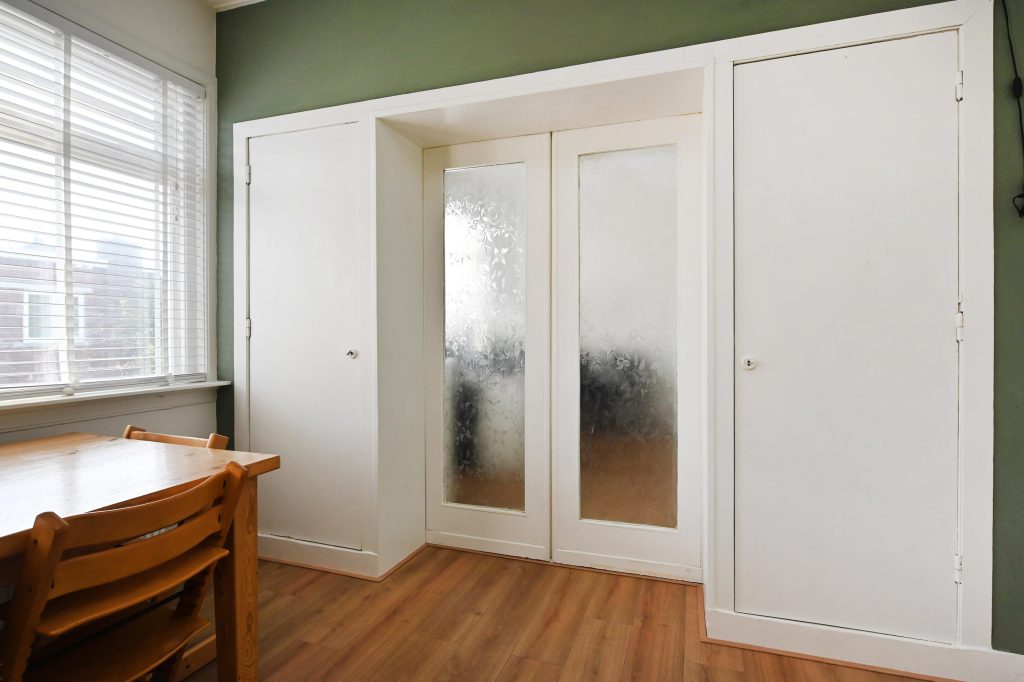 Aan de voorzijde gelegen woonkamer en suite over de breedte met suite separatie met vaste kasten.