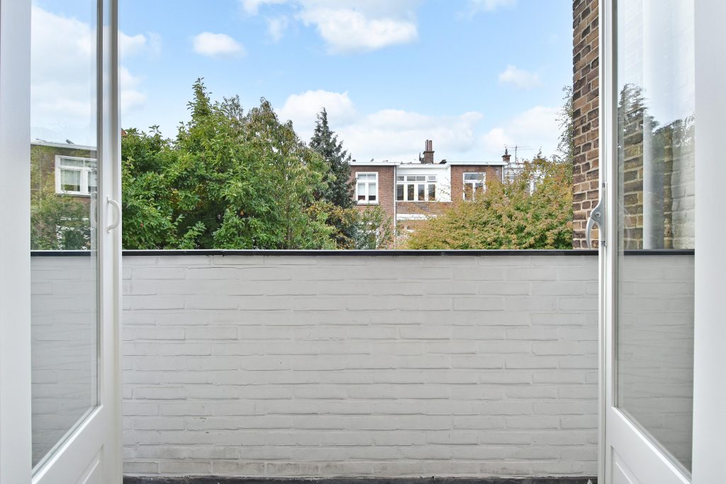 Vanaf het balkon geniet u van de rust en het uitzicht over het groen — een oase van stilte midden in de stad.