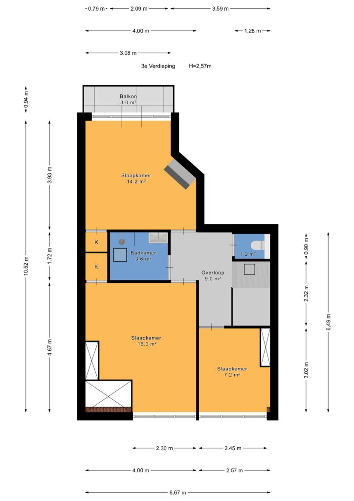Twee riante slaapkamers aan de voorzijde en een slaapkamer aan de achterzijde tevens voorzien van toegang tot het balkon.