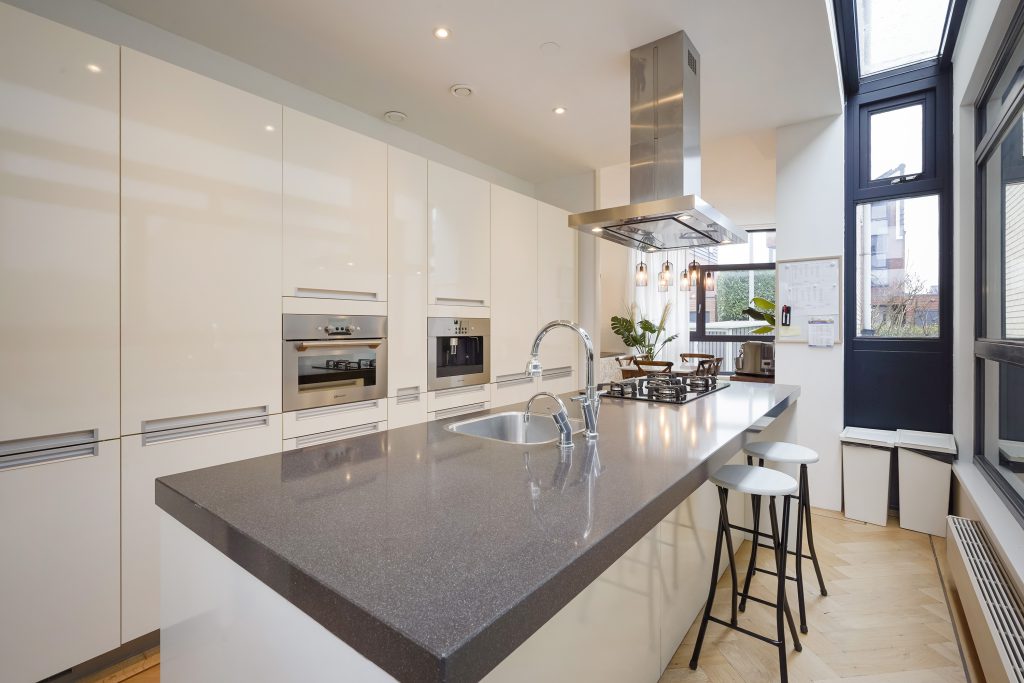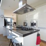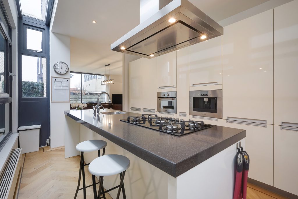 – Luxe open woonkeuken met kookeiland, voorzien van hoogwaardige inbouwapparatuur o.a. 5-pits gaskookplaat, ruime koelkast en vriezer, een handige Quooker, een dubbele oven en een wijnklimaatkast. Alle apparatuur is van gerenommeerde keuken merken Bauknecht, Bosch en Liebherr.