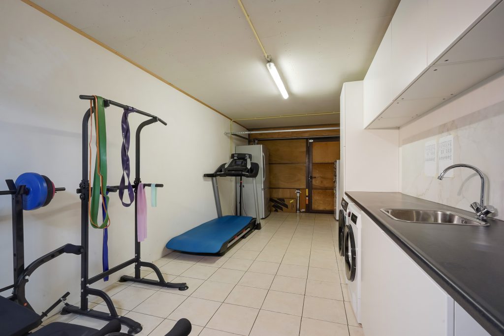 – De inpandige garage is momenteel in gebruik als fitness ruimte, de laundry is hier ook aanwezig.