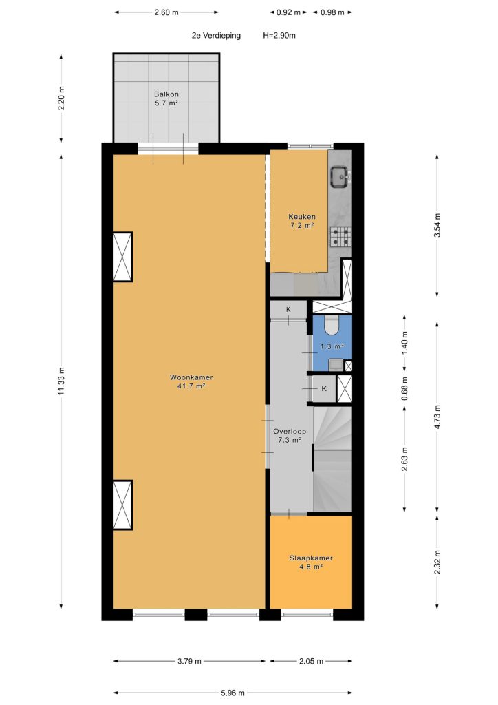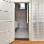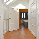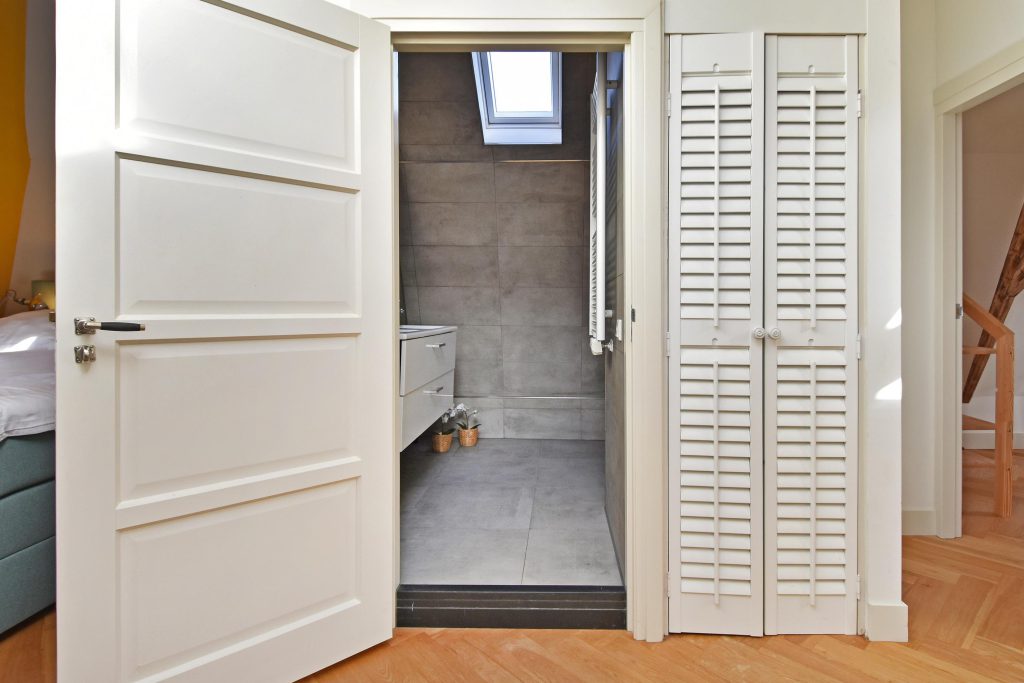 Praktisch detail: op deze verdieping bevindt zich tevens een vaste kast met de cv-combiketel en de aansluiting voor de wasmachine – netjes uit het zicht en toch binnen handbereik.