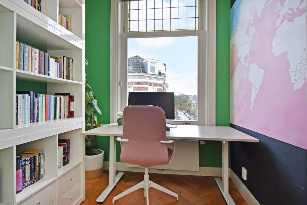 Naast de woonkamer ligt een lichte studeerkamer, die ook uitstekend als slaapkamer of logeerkamer gebruikt kan worden.