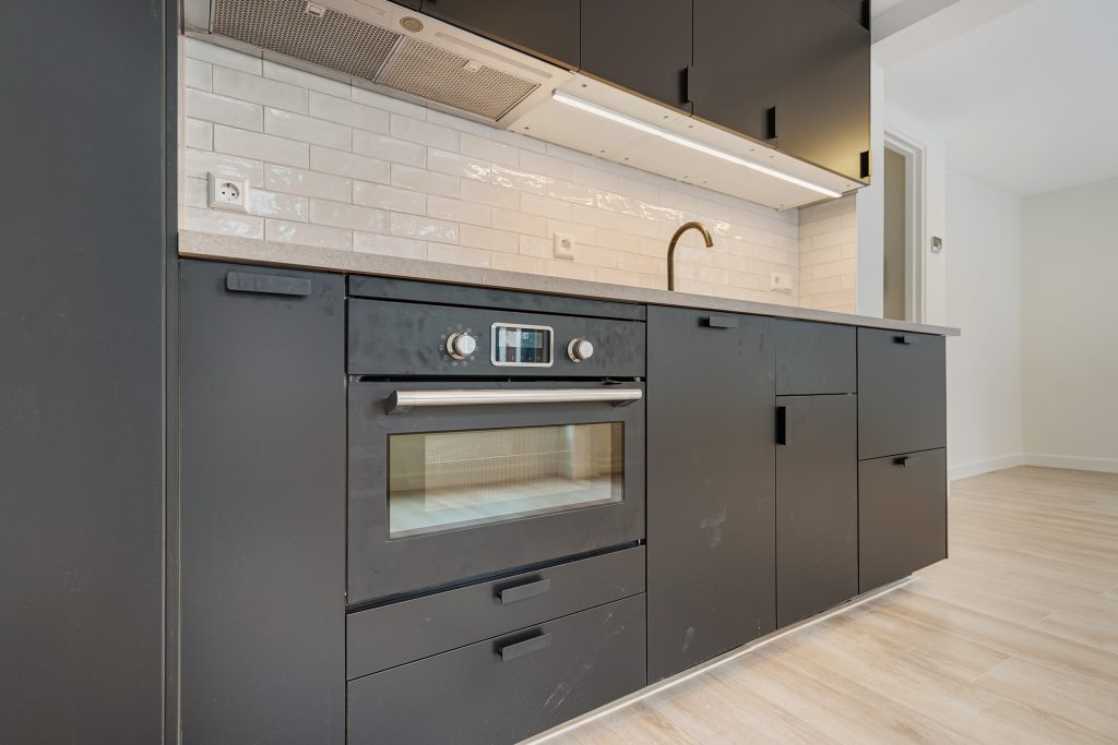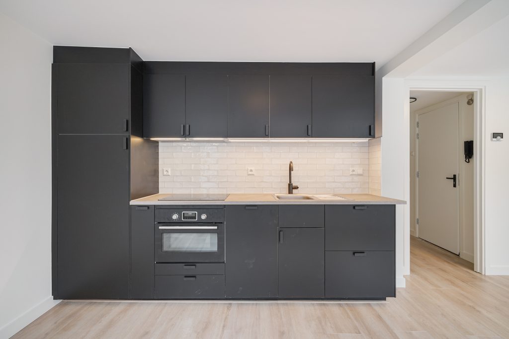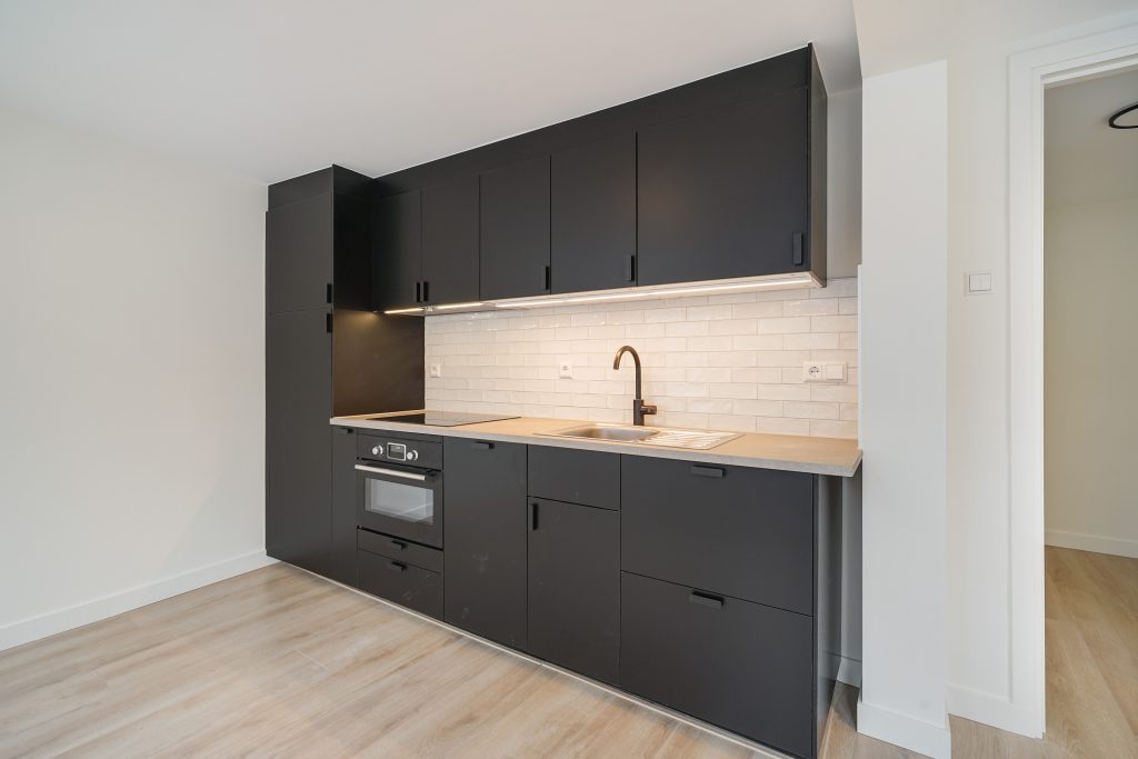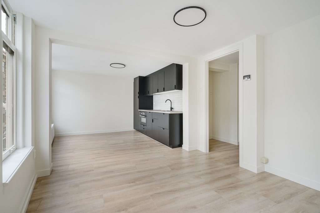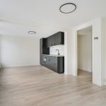 De lichte woonkamer wordt versterkt door een moderne laminaatvloer en een strakke afwerking. De luxe open keuken is volledig vernieuwd en uitgerust met hoogwaardige inbouwapparatuur, perfect voor wie koken graag onderdeel maakt van het dagelijks leven.