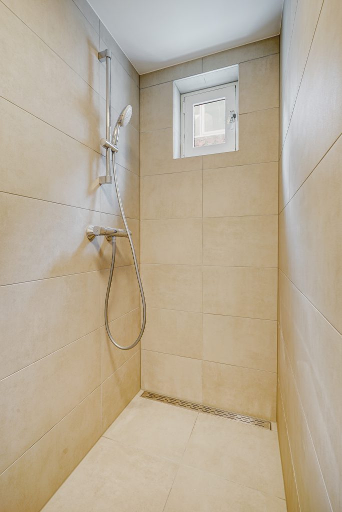 * Moderne badkamer met douche, toilet en wastafel;