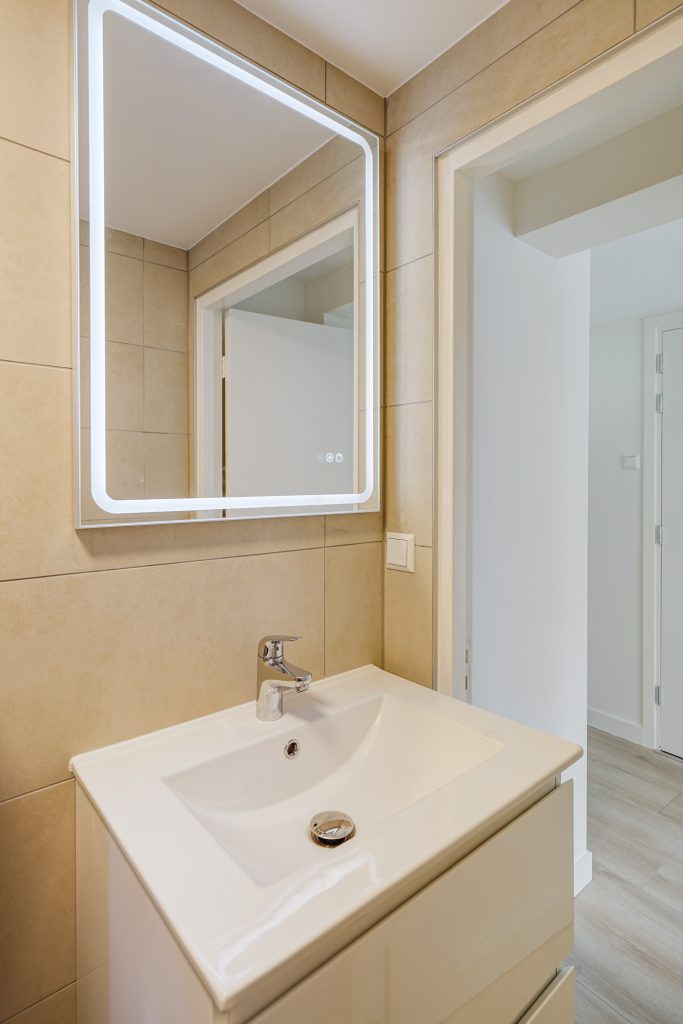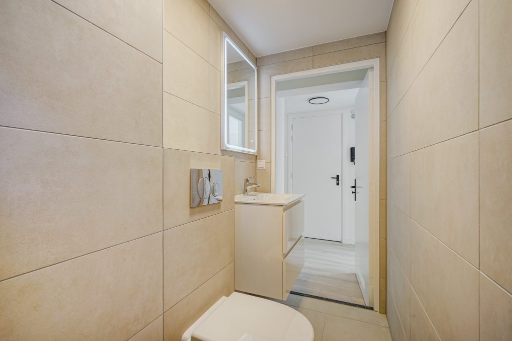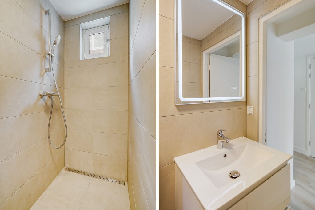 Het appartement beschikt over één slaapkamer, rustig gelegen en praktisch ingedeeld. De badkamer is modern uitgevoerd met een douche, toilet en wastafel, afgewerkt met eigentijdse materialen.