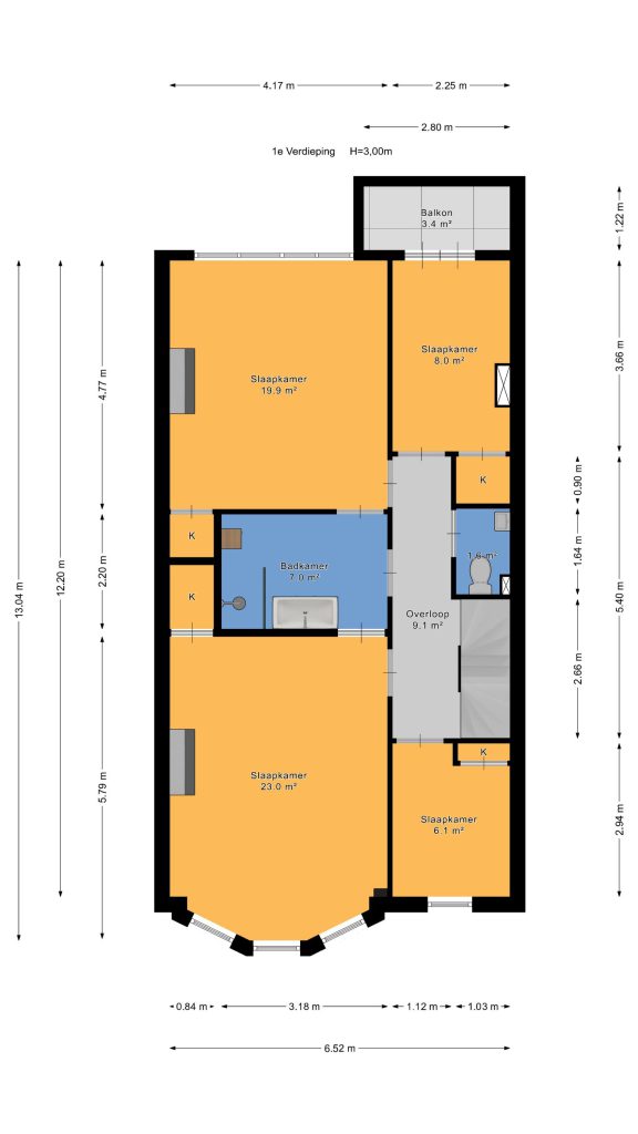 Ruime overloop met wc. Riante voorslaapkamer met diepe vaste kast, erker aan de voorzijde, schouw en parketvloer Voorzijkabinet met vaste kast. Achterslaapkamer met schouw, vaste kast en parketvloer. Achterzijkabinet met vaste kast en toegang tot het achterbalkon. Moderne (2024) tussengelegen badkamer met vloerverwarming. De badkamer is voorzien van inloopdouche, massiefhouten kast en wastafelmeubel met dubbele wastafel.