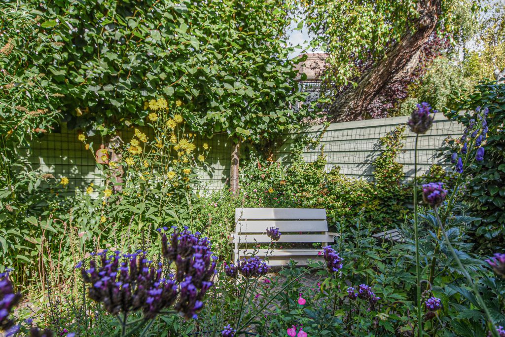 De prachtig verzorgde tuin op het noordwesten is een paradijs voor bloemen en vogels. Hier geniet je van lange zomeravonden, spelende kinderen of een goed glas wijn terwijl de zon langzaam ondergaat.