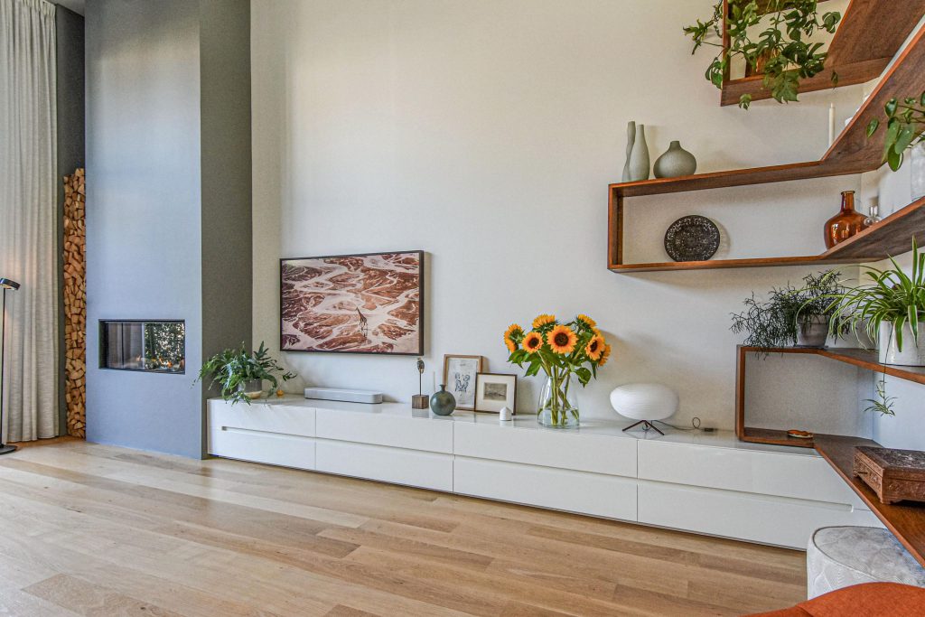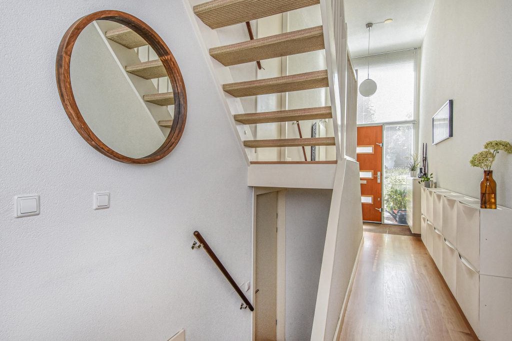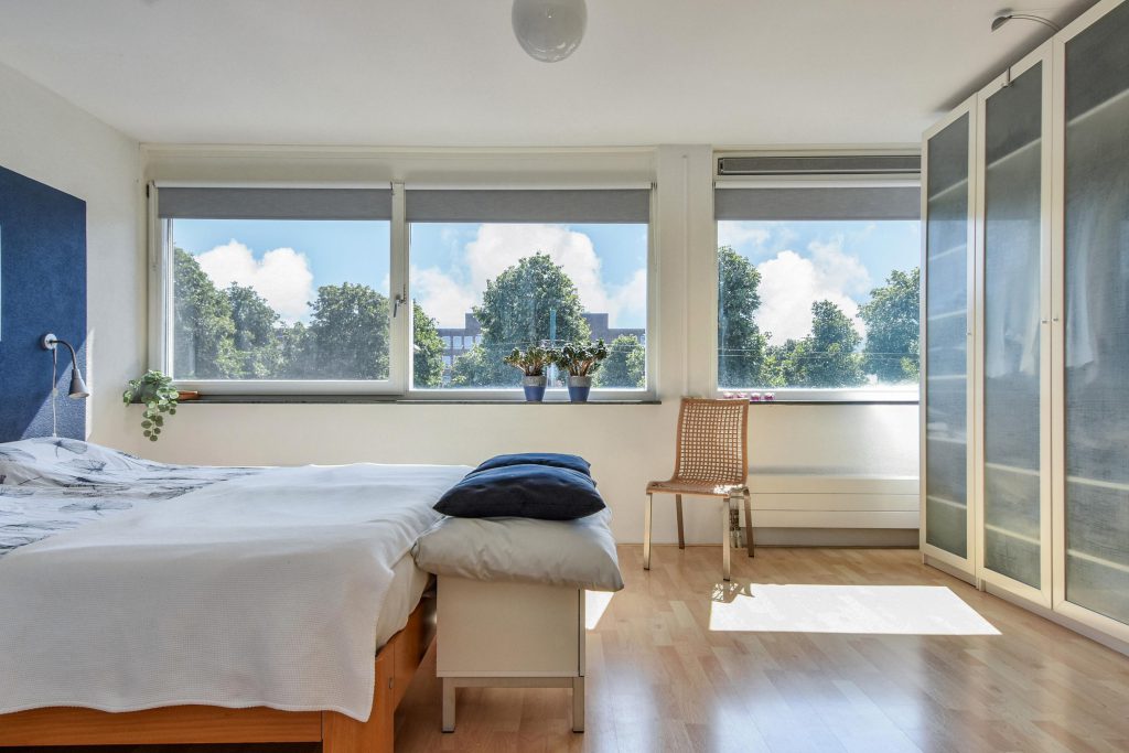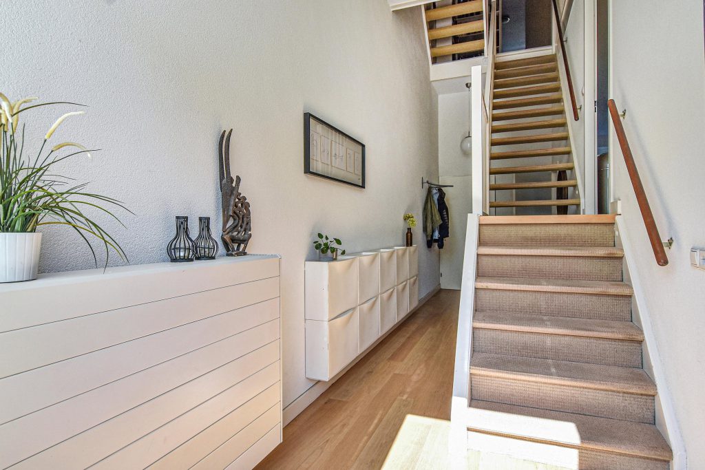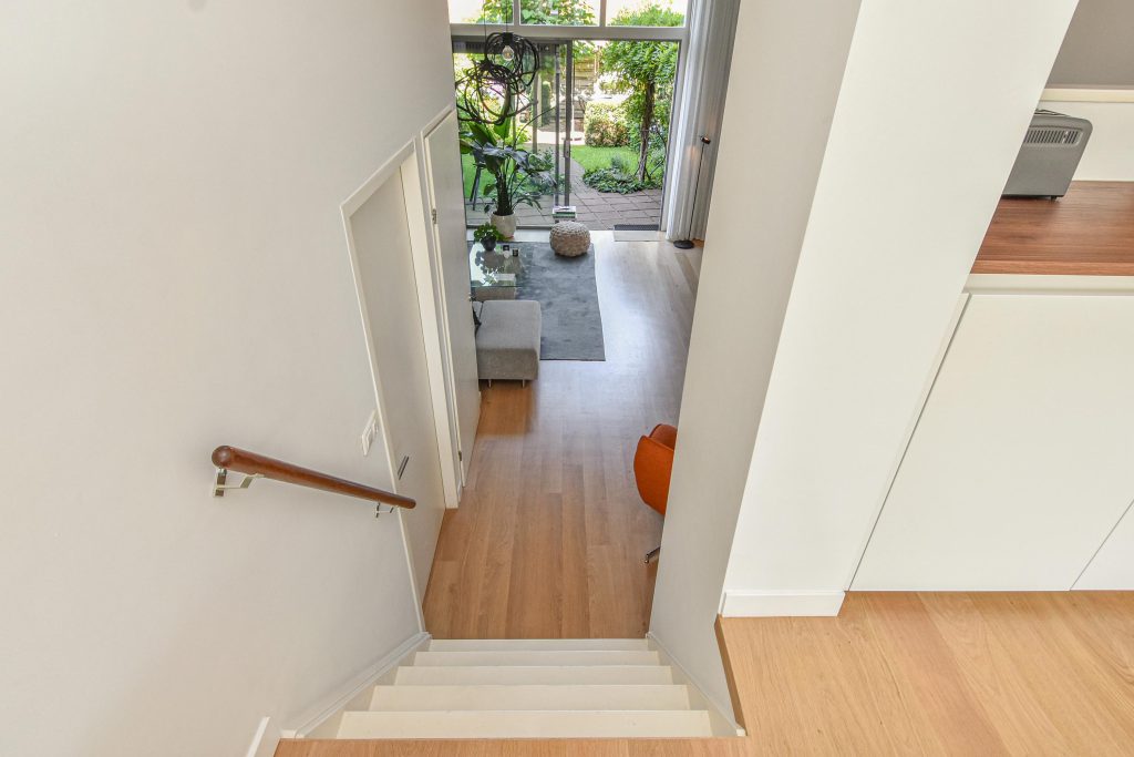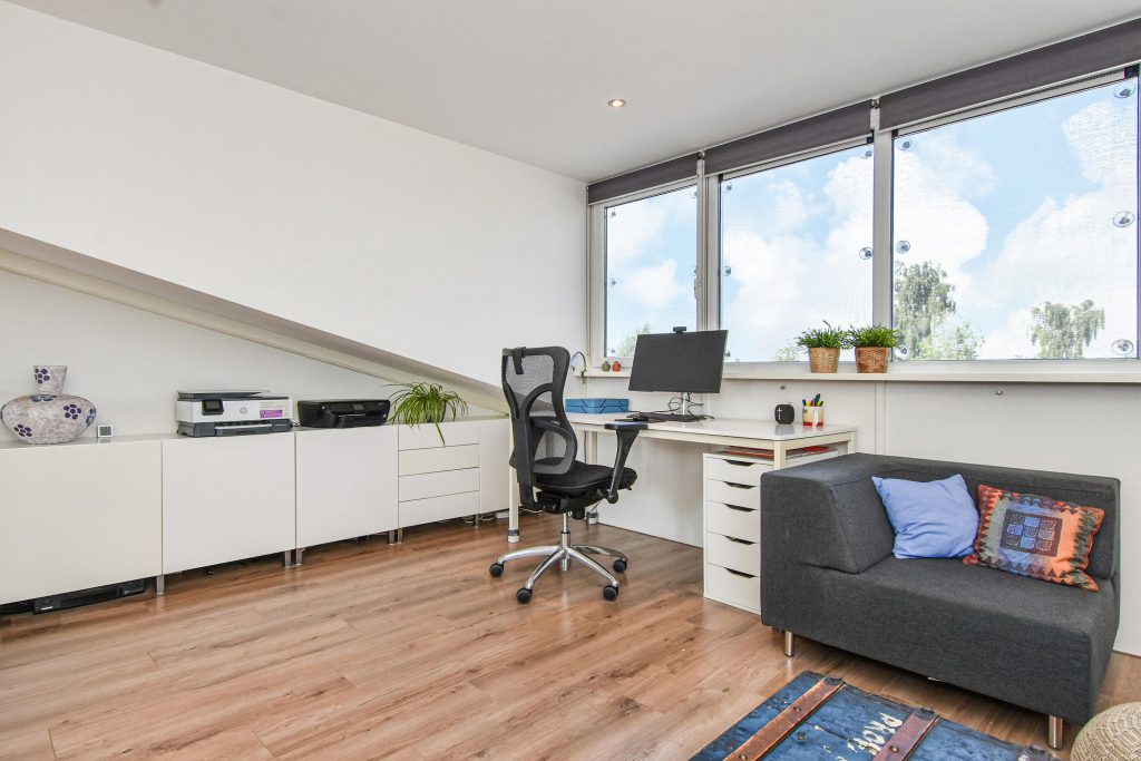 De sfeervolle splitlevel-indeling zorgt voor een speelse indeling en een prachtige lichtinval door de hele woning. De hoge ramen, open zichtlijnen en de subtiele verbinding tussen de verschillende woonniveaus geven een gevoel van vrijheid.