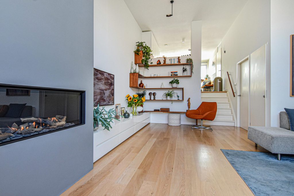 – in 2021 is de begane grond volledig gestuct en de gas openhaard geplaatst