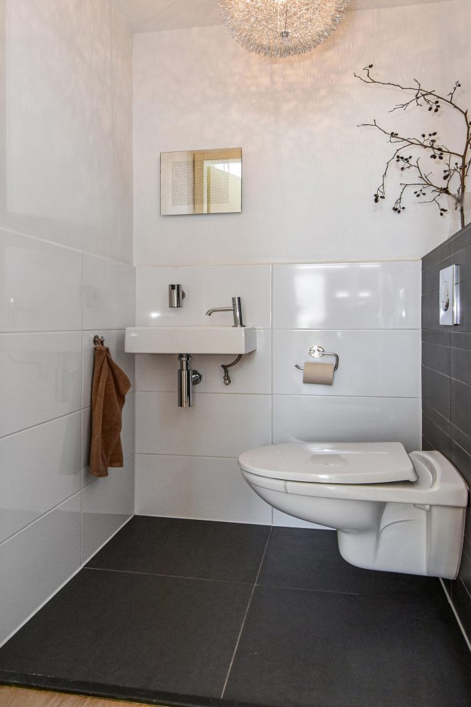 Entree, ruime hal, modern toilet, vanuit de hal is er toegang naar de royale inpandige garage 5.85m x 2.95m.